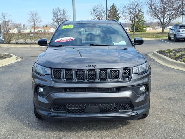 REMAINDER OF FACTORY WARRANTY, FULLY SERVICED, ONE OWNER, LOCAL TRADE, 4WD, Altitude Special Edition, Black Day Light Opening Moldings, Black Roof, Gloss Black Badges, Gloss Black Grille & Crosshairs, Light Tungsten Interior Accent Stitching, Piano Black Interior Accents, Quick Order Package 29B Altitude, Wheels: 18" x 7" Gloss Black Painted Aluminum. CARFAX One-Owner. Clean CARFAX. Certified. 2023 Jeep Compass Altitude Black out pkg !! 22,900 miles 4D Sport Utility 4WD 8-Speed Automatic 2.0L I4 DOHC
