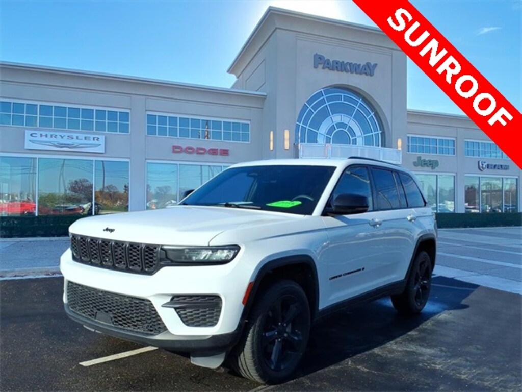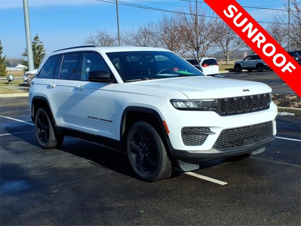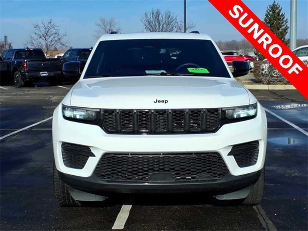 MOONROOF SUNROOF, REMAINDER OF FACTORY WARRANTY, FULLY SERVICED, NEW TIRES, ONE OWNER, LOCAL TRADE, 4WD, 115-Volt Auxiliary Power Outlet, Altitude Appearance Package, Black Headliner, Capri Leatherette Seats w/Suede, Delete Laredo Badge, Gloss Black Exterior Accents, Gloss Black Roof Rails, Power Liftgate, Quick Order Package 23B Altitude, Rain-Sensing Windshield Wipers, Remote Start System, Secondary Active Grille Shutters, Selectable Tire Fill Alert, Wheels: 20" x 8.0" Gloss Black Aluminum, Wireless Charging Pad. CARFAX One-Owner. Clean CARFAX. Certified. Bright White Clearcoat 2023 Jeep Grand Cherokee Altitude SUNROOF CERTIFIED NEW TIRES 4D Sport Utility 4WD 8-Speed Automatic 3.6L V6 24V VVT