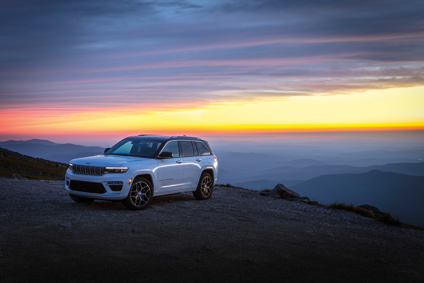 The Limited and Overland trims add midnight sky and Rocky Mountain pearl. The Summit and Summit Reserve feature additional two-tone paint schemes.