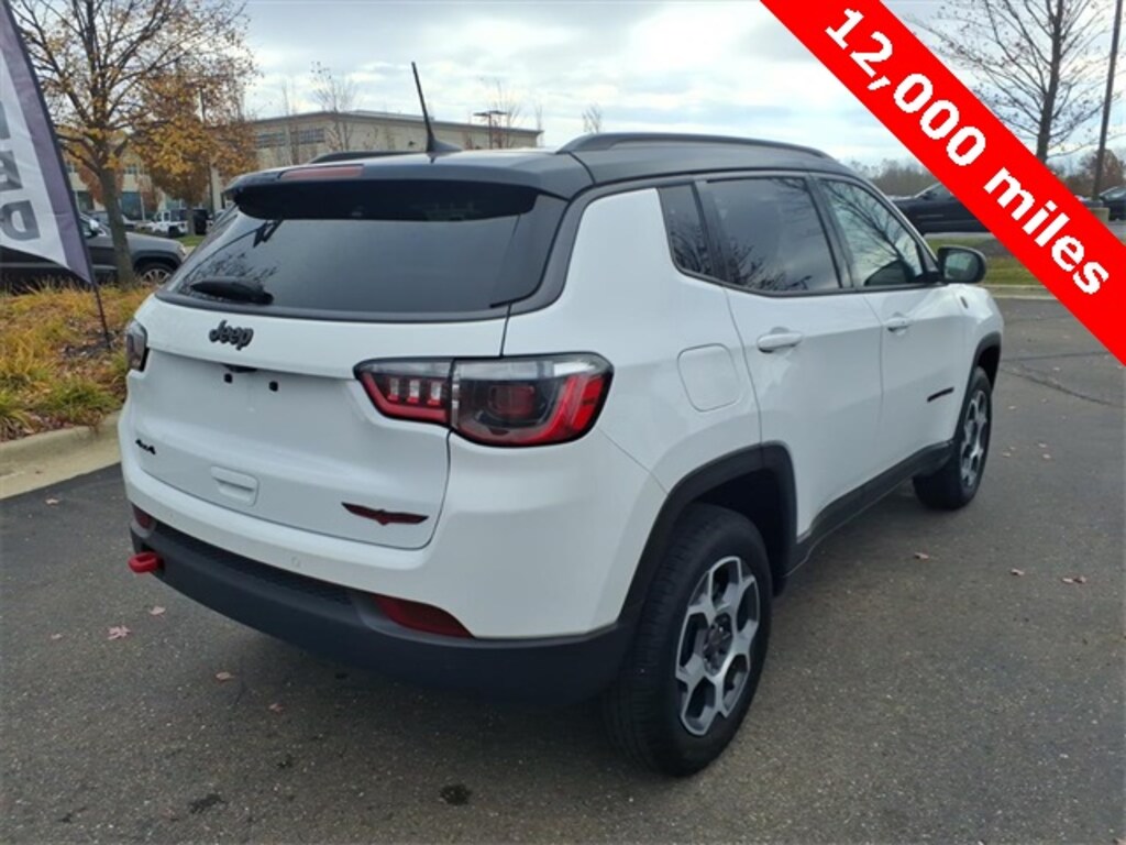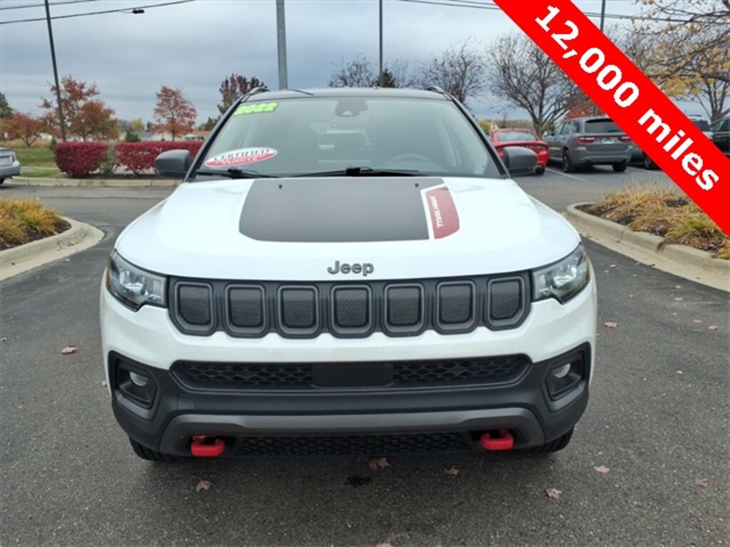 REMAINDER OF FACTORY WARRANTY, FULLY SERVICED, NEW TIRES, ONE OWNER, LOCAL TRADE, 4WD, 115V Auxiliary Power Outlet, 2nd Row USB Type A/C Charge Only, Heated Front Seats, Leather Wrapped Steering Wheel, Power 2-Way Driver Lumbar Adjust, Power Adjust 8-Way Driver Seat, Quick Order Package 2GE, Remote Start System, Reversible Carpet/Vinyl Cargo Mat, Trailhawk Convenience Group, Vehicle Information Center, Windshield Wiper De-Icer. CARFAX One-Owner. Clean CARFAX. Certified. Bright White Clearcoat 2022 Jeep Compass Trailhawk Only 12,000 miles !!!!!!!!!! 4D Sport Utility 4WD 9-Speed 948TE Automatic 2.4L I4