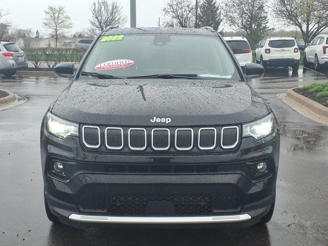 New Price! REMAINDER OF FACTORY WARRANTY, FULLY SERVICED, ONE OWNER, LOCAL TRADE, 4WD, Quick Order Package 2GG. Certified. Diamond Black Crystal Pearlcoat 2022 Jeep Compass Limited Only 19,300 miles 4D Sport Utility 4WD 9-Speed 948TE Automatic 2.4L I4