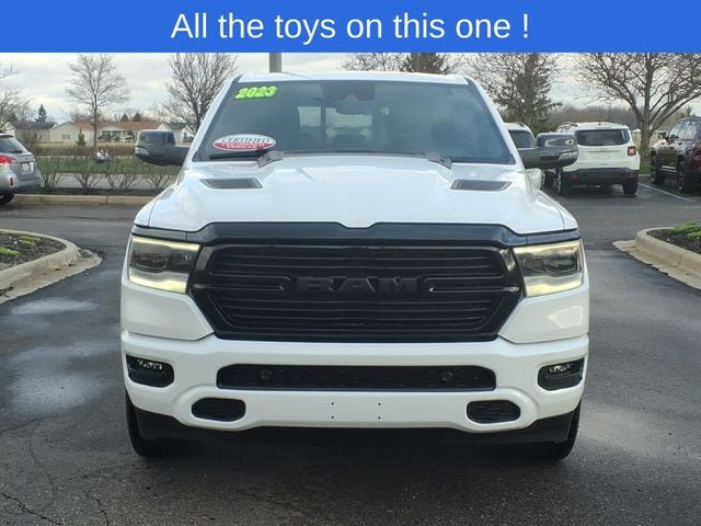 New Price! REMAINDER OF FACTORY WARRANTY, FULLY SERVICED, NEW TIRES, ONE OWNER, LOCAL TRADE, 12" Touchscreen Display, 2nd Row In Floor Storage Bins, 3.92 Rear Axle Ratio, 4 Way Front Headrests, 4G LTE Wi-Fi Hot Spot, Apple CarPlay, Auto High Beam Headlamp Control, Bed Utility Group, Blind Spot & Cross Path Detection, Bucket Seats, Center Console Parts Module, Connected Travel & Traffic Services, Connectivity - US/Canada, Disassociated Touchscreen Display, Driver Seat Memory, Electric Shift-On-Demand Transfer Case, Floor Console, Foam Bottle Insert (Door Trim Panel), For Details, Visit DriveUconnect.com, For More Info, Call 800-643-2112, Front Door Accent Lighting, Front LED Fog Lamps, Front Seat Back Map Pockets, G/T Decal, G/T Package (DISC), Global Telematics Box Module (TBM), Google Android Auto, GPS Antenna Input, GPS Navigation, GT Interior Theme, harman/kardon 19 Speaker Premium Sound, HD Radio, Heated Front Seats, Heated Steering Wheel, Integrated Center Stack Radio, Integrated Voice Command w/Bluetooth, Laramie Level B Equipment Group, Leather Wrapped Shift Knob, Leather-Wrapped Steering Wheel, Leather/Vinyl Bucket Seats, LED Reflector Headlamps, MOPAR 4 Adjustable Cargo Tie-Down Hooks, MOPAR Bright Pedal Kit, MOPAR Cold Air Intake System, MOPAR Off Road Truck Rubber Floor Mats, MOPAR Spray In Bedliner, Navigation System, ParkSense Front/Rear Park Assist w/Stop, Passive Cold End Exhaust, Performance Pages, Pick-Up Box Lighting, Power 4-Way Driver Lumbar Adjust, Power 4-Way Passenger Lumbar Adjust, Power 8-Way Driver & Passenger Seats, Radio: Uconnect 5 Nav w/12.0" Display, Rain Sensitive Windshield Wipers, Rear 60/40 Folding Split Recline Seat, Rear Door Accent Lighting, Rear Power Sliding Window, Rear Underseat Compartment Storage, Rear Window Defroster, Remote Tailgate Release, SiriusXM Radio Service, SiriusXM w/360L, Sport Performance Hood, Steering Wheel Mounted Shift Control, USB Host Flip, Ventilated Front Seats. CARFAX One-Owner. Clean CARFAX. Certified. Bright White Clearcoat 2023 Ram 1500 Laramie This one has it !!!!!!!! 4D Crew Cab 4WD 8-Speed Automatic HEMI 5.7L V8 Multi Displacement VVT eTorque